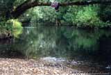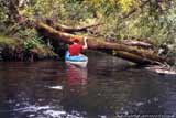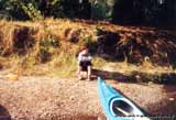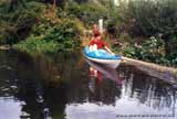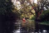 Wie auf den Bildern sicherlich gut zu erkennen ist, kommt man sich auf der Kinzig wie im Urwald vor. Alles ist sehr verkrautet und zugewachsen, der Uferbewuchs ragt oft bis weit in den Fluss hinein. Aber gerade das war es, was diese Tour zu einem besonderen Erlebnis machte- eine vergleichbare Naturlandschaft sieht man sonst nur selten. Das Wasser ist so klar, dass man fast überall bis auf den Grund gucken kann und sehr oft bekommt man auch einen Eisvogel zu sehen, den viele sicherlich nur aus der Licher-Bier- Werbung kennen ;-) Viele der Bilder sind ganz gut geworden, trotzdem war ich ziemlich verärgert, als ich die weniger erfreuliche Nachricht vom Fotohändler hören musste: Ich hatte nämlich immerhin 2 Filme zur Entwicklung abgegeben, wovon einer aber komplett nichts geworden war. Und das musste auch noch gerade der Film sein, auf den ich so gespannt war - da waren nämlich die Bilder der Kanutour vom Vortag drauf, die ich mit Timur unternommen hatte. Das interessante daran war nämlich, dass Timur tatsächlich an einer tückischen Stelle gekentert war... Ich konnte es mir natürlich nicht verkneifen, ihn dabei auch mal abzulichten *ggg*. So ging ich also schon händereibend und voller Spannung in den Fotoladen, um zu sehen, was aus den Bildern geworden ist - wie sich dann aber zeigte, war wohl der Filmtransporter des Fotoapparats fehlerhaft, weshalb der Film immer nur an der selben Stelle belichtet worden war :-(. Naja, 1:0 Für Timur - aber beim nächsten mal versagt die Kamera bestimmt nicht *fg*. |